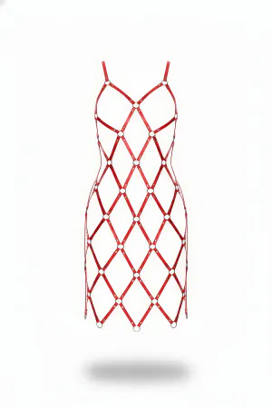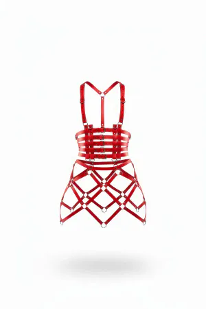 Red Skirt Leather Bustier Top with Hoop Detail - APFT785