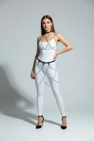 Silver Skirt Chain Detailed Skirt Ring Linked Body Accessory - APFT475