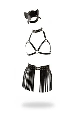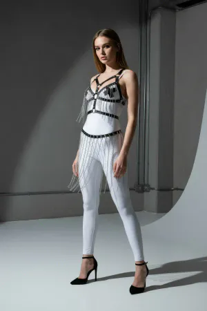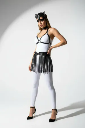 Black Skirt with Silver Chain Detail, Waist and Leg Jewelry - APFT475