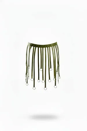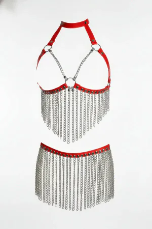 Red Skirt with Leather Chain Detail and Ring Accessories - APFT496