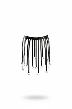Black Skirt with Leather Strips and Metal Ring Detail - APFT410