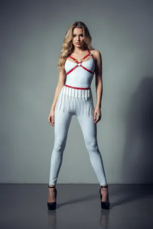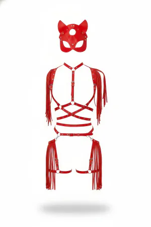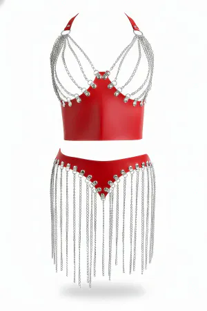 Red Skirt Leather Tassel Body Accessory Set - APFT892