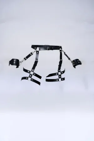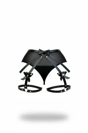 Black Thong - Panties, Multiple Belts, Metal Detailed, Ankle Cuffed Garter - APFT1022