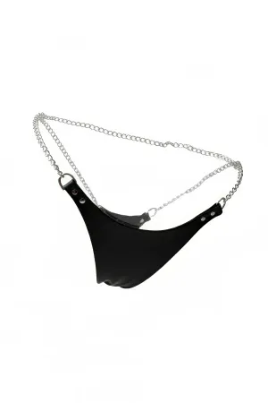 Black Thong - Panties Shiny Faux Leather Chain Link - APFT1157
