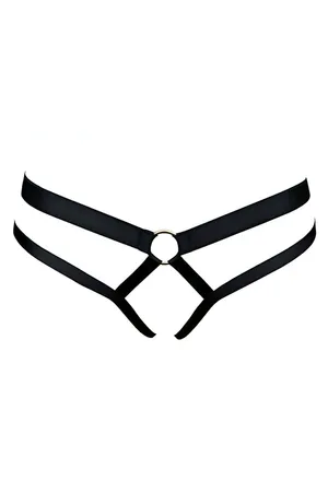 Harness Thong Panty with Strappy Rings - Black Adjustable Design