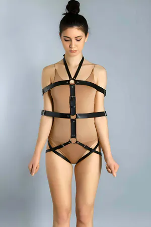 Fancy Leather Harness Set with Open Crotch Cuffs - APFT1131