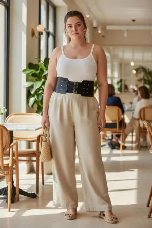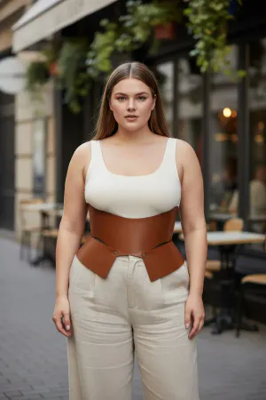 Plus Size Khaki Women's Belt Corset Style Thick Leather Design - APFT611