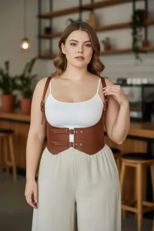 Plus Size Tan Women's Belt Shoulder Strap Corset Design - APFT616
