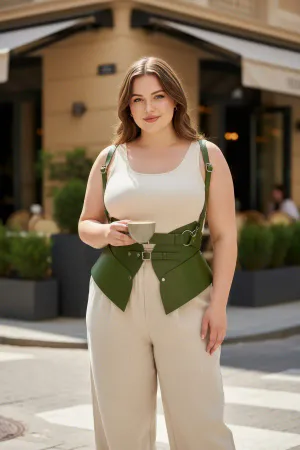 Plus Size Khaki Women's Belt Corset Look Thick Leather - APFT619