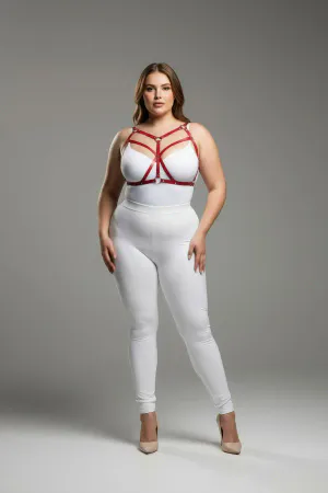 Plus Size Red Women's Leather Harness Set with Sexy Ring Detail - APFT422