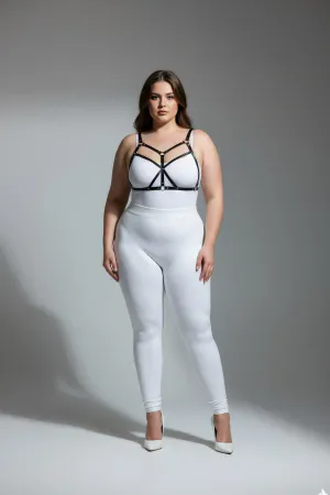 Plus Size White Women's Harness Suit Chain Detailed Leather Fancy Accessory - APFT477