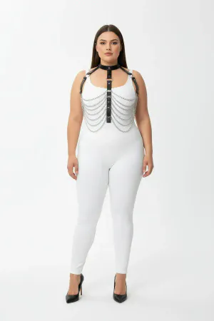 Plus Size Black Women's Harness Suit Chain Detailed Leather Fancy Accessory - APFT701