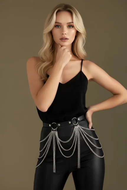 The double buckle design provides a bold statement while securing the belt firmly in place. Adjustable sizing offers flexibility across four distinct ranges, ensuring the perfect fit for every wearer. Made from durable materials, this fashion belt accessory resists wear and maintains its look over time. Customers praise its combination of comfort, durability, and unique style, with many positive reviews highlighting its ability to add an edgy yet elegant touch to any wardrobe.