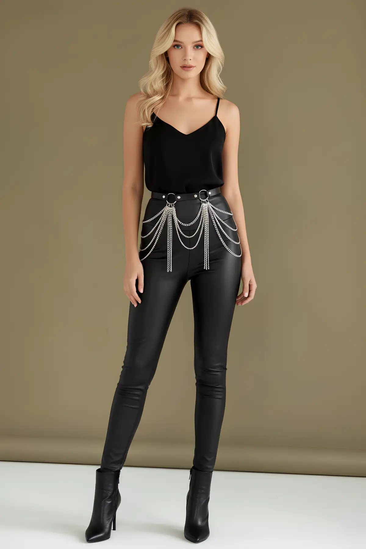 Leather Belt With Chain – Adjustable Stylish Dress Accessory, Plus Size Options
