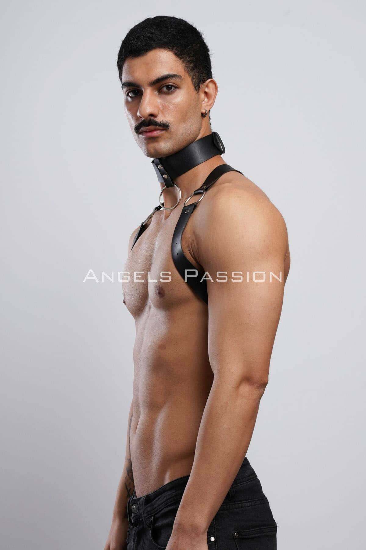 With My Store’s commitment to quality, you receive a product that merges function with fashion seamlessly. Whether dressing up for a themed party or enhancing your everyday style, this plus size harness offers exceptional value and appeal. Experience the perfect blend of comfort and style with this adjustable men’s choker body harness designed for versatile wear. The durable leather construction ensures the accessory withstands energetic nights while maintaining its shape.