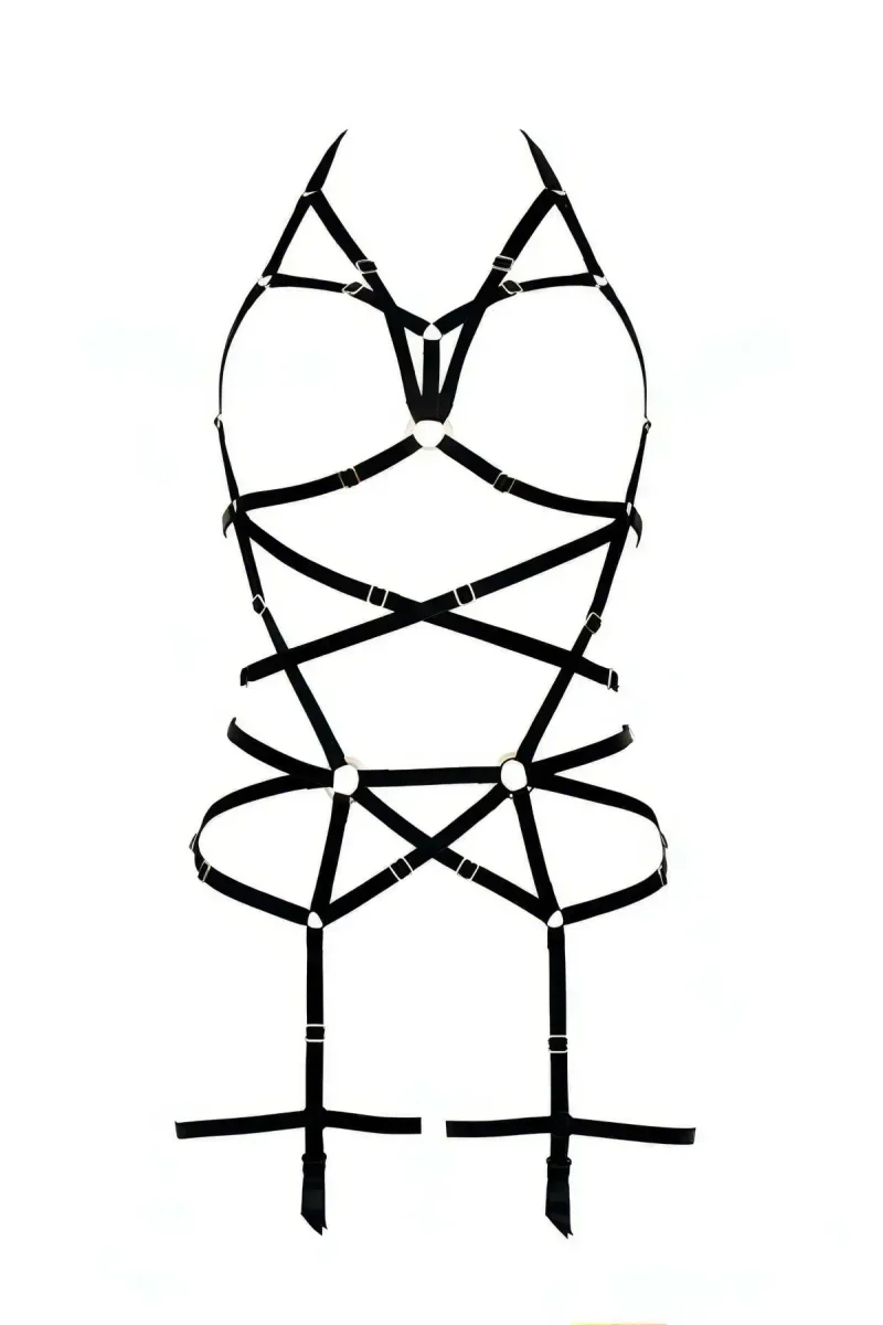 Black Body Harness Ring Detailed Full Body Accessory - APFT568