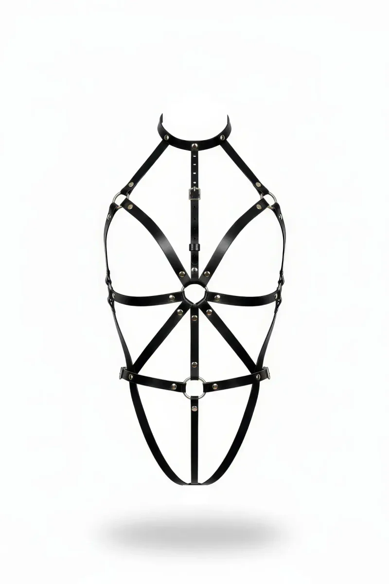 Black Body Harness Full Body Metal Ring Detailed - APFT360