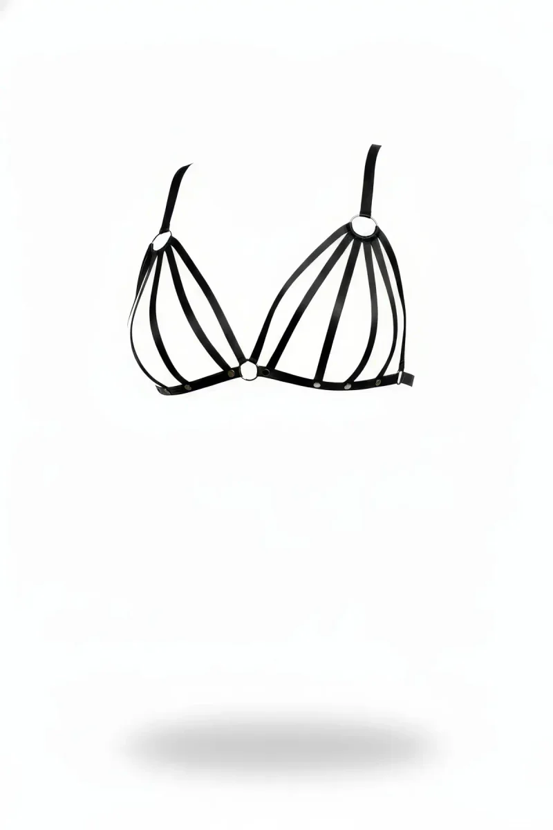 Black Chest Harness with Faux Leather Ring Detail - APFT553