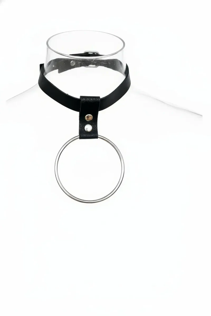 Black Choker Leather Choker with Big Ring Detail - APFT400
