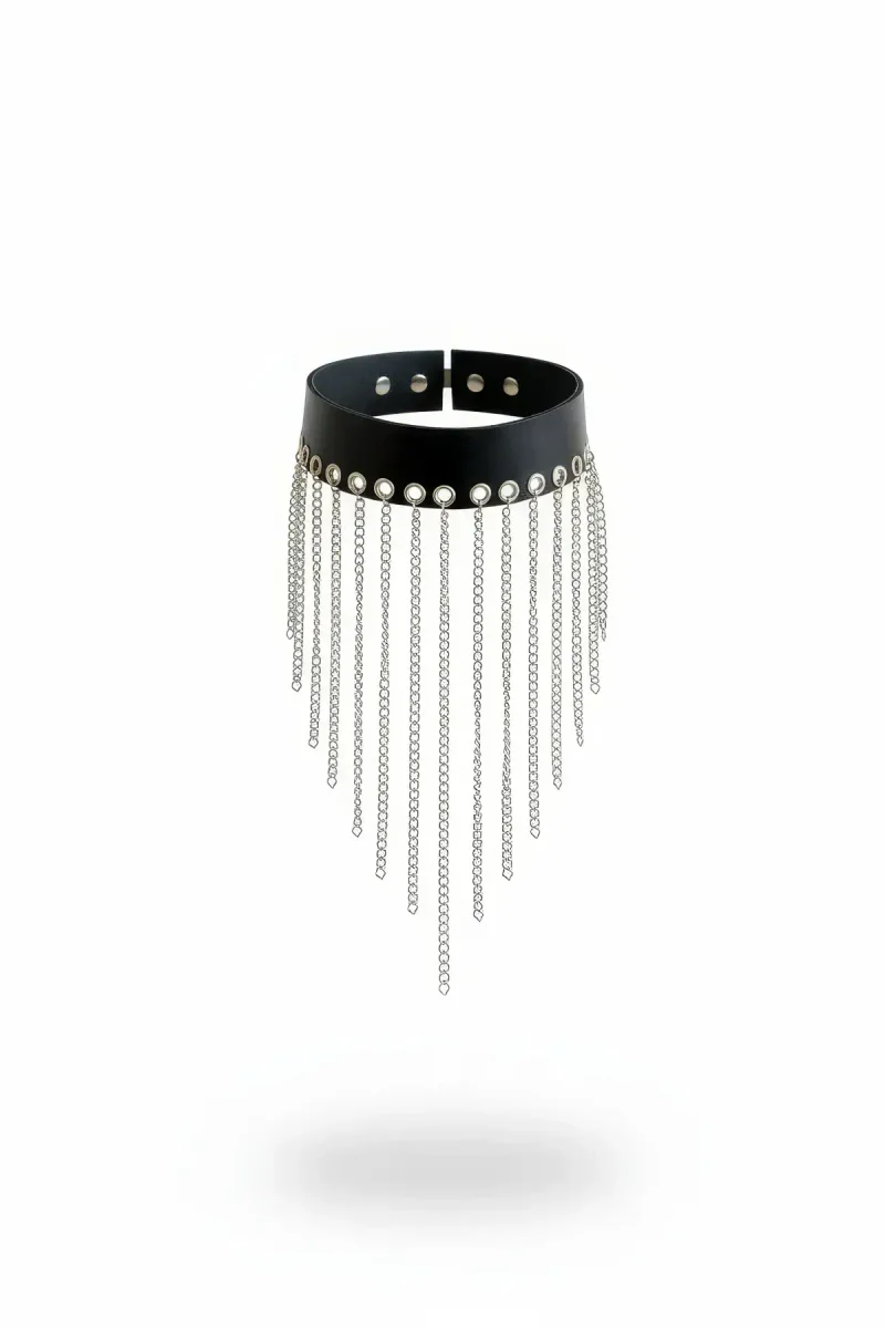 Black Choker Long Chain Tasseled Leather Choker - APFT629