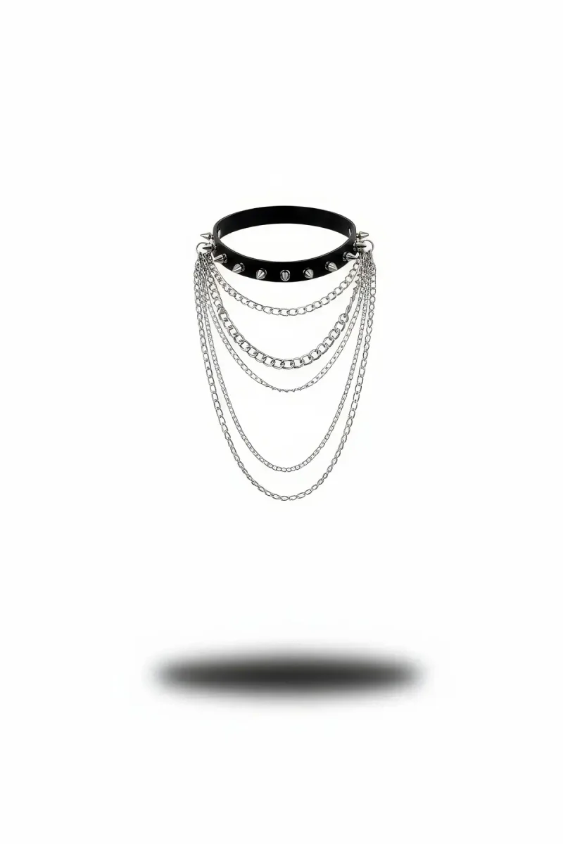 Black Choker Studded Multi-Layered Chain Choker - APFT1042