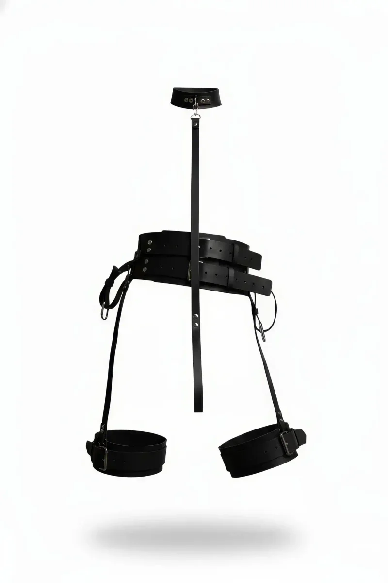 Black Harness Set with Leather Neck Collar and Leg Cuffs - APFT869