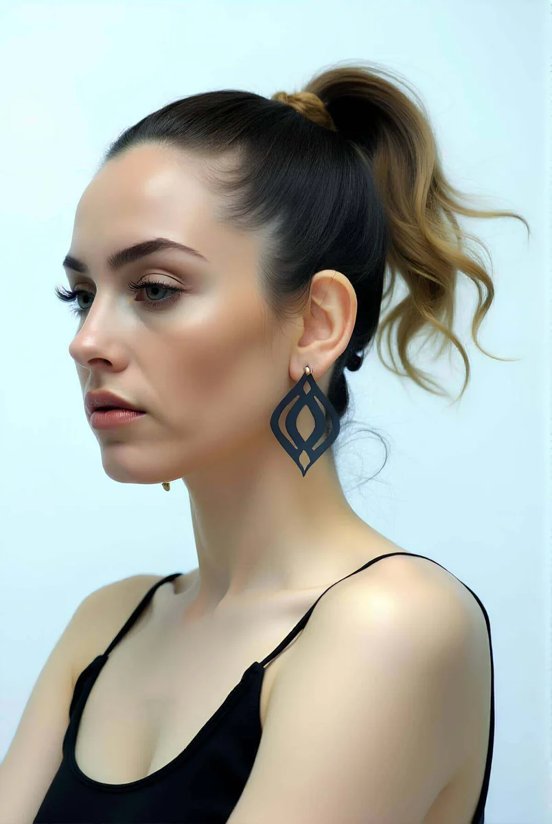 Black Motif Drop Earrings, Stylish Laser Cut Leather Earrings - APBJ008