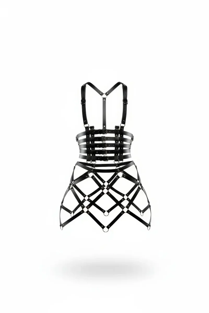Black Skirt with Leather Buckle and Cross Detail Skirt with Cage Structure - APFT785