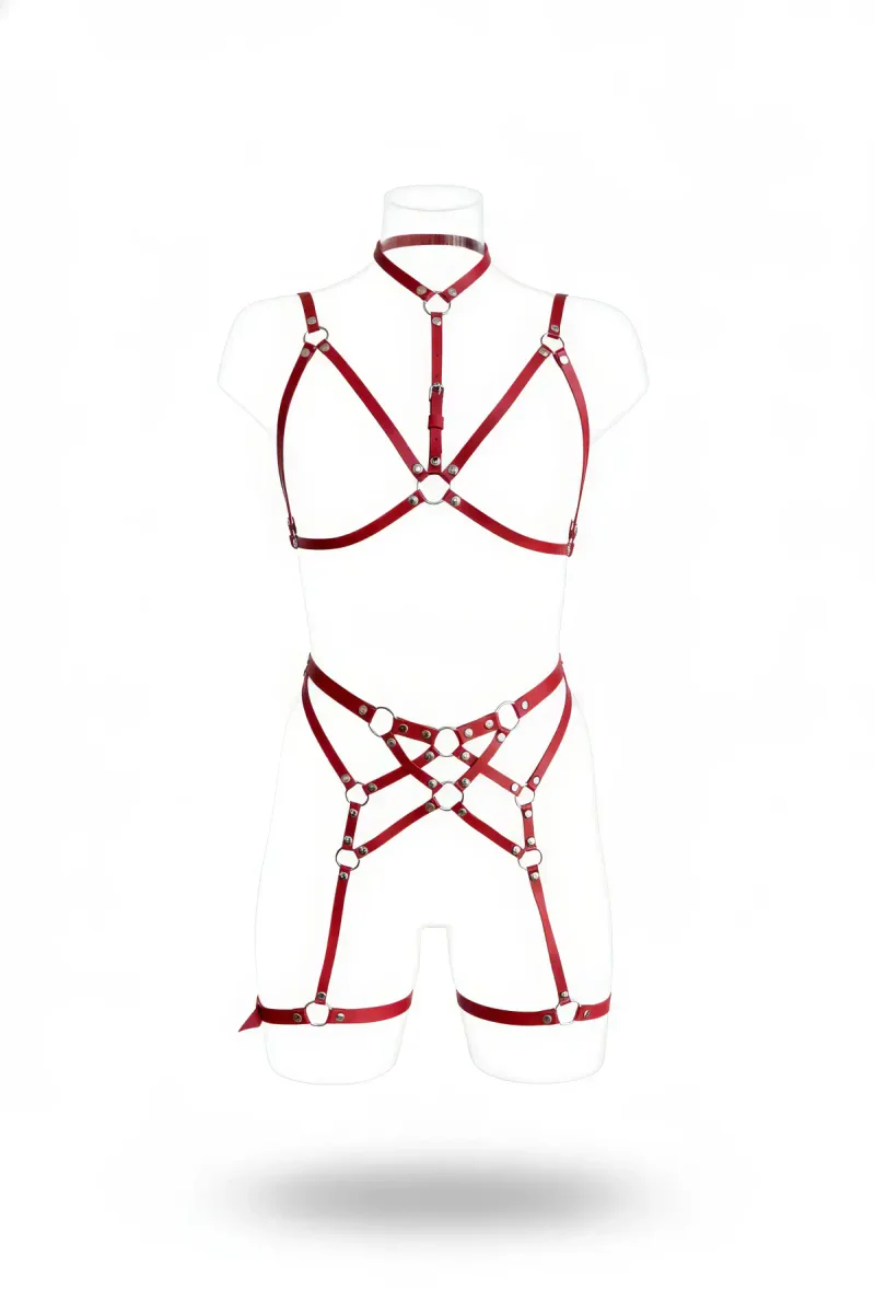 Red Garter Harness Leather with Adjustable Buckle - APFT804