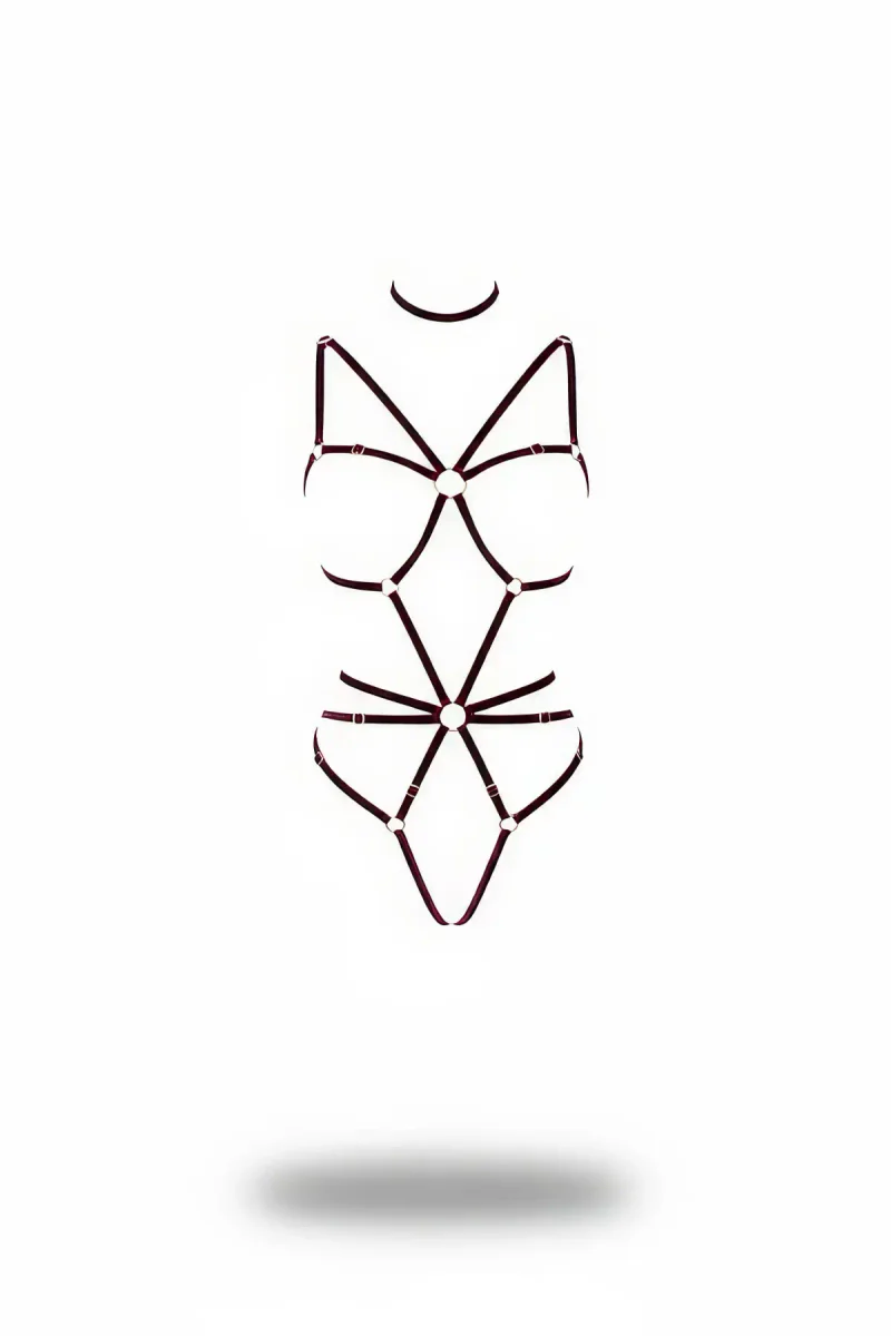 Claret Red Body Harness with Full Body Ring Detail - APFT338