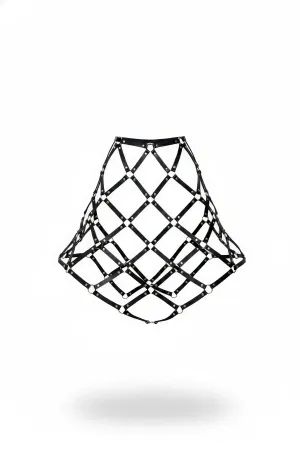 Black Skirt with Leather Buckle and Cross Detail Skirt with Cage Structure - APFT785