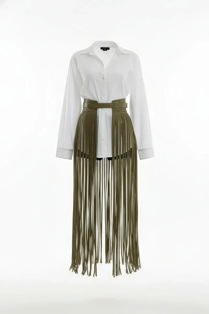 Fringe Skirt Belt - Khaki Maxi Length Adjustable Fashion