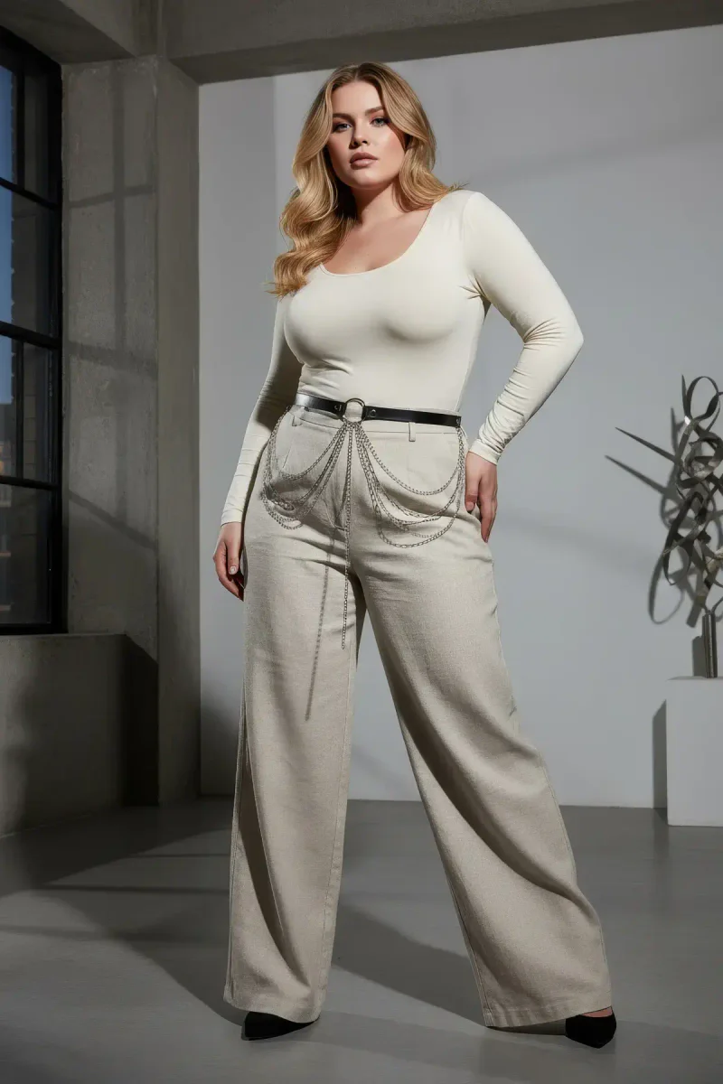 Large Size Black Women's Leather Belt with Multiple Chain Detail Design - APFT922