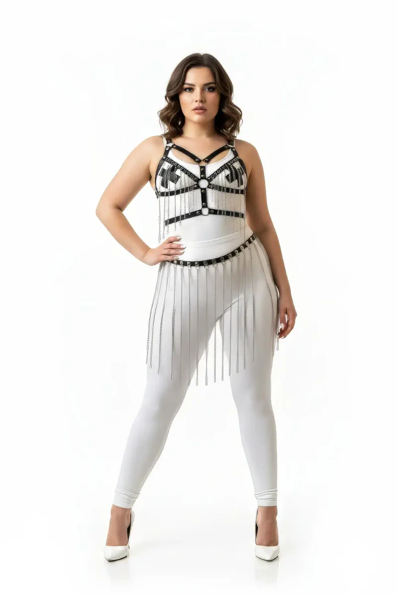 Black Faux Leather Cage Harness Top & Midi Skirt Set