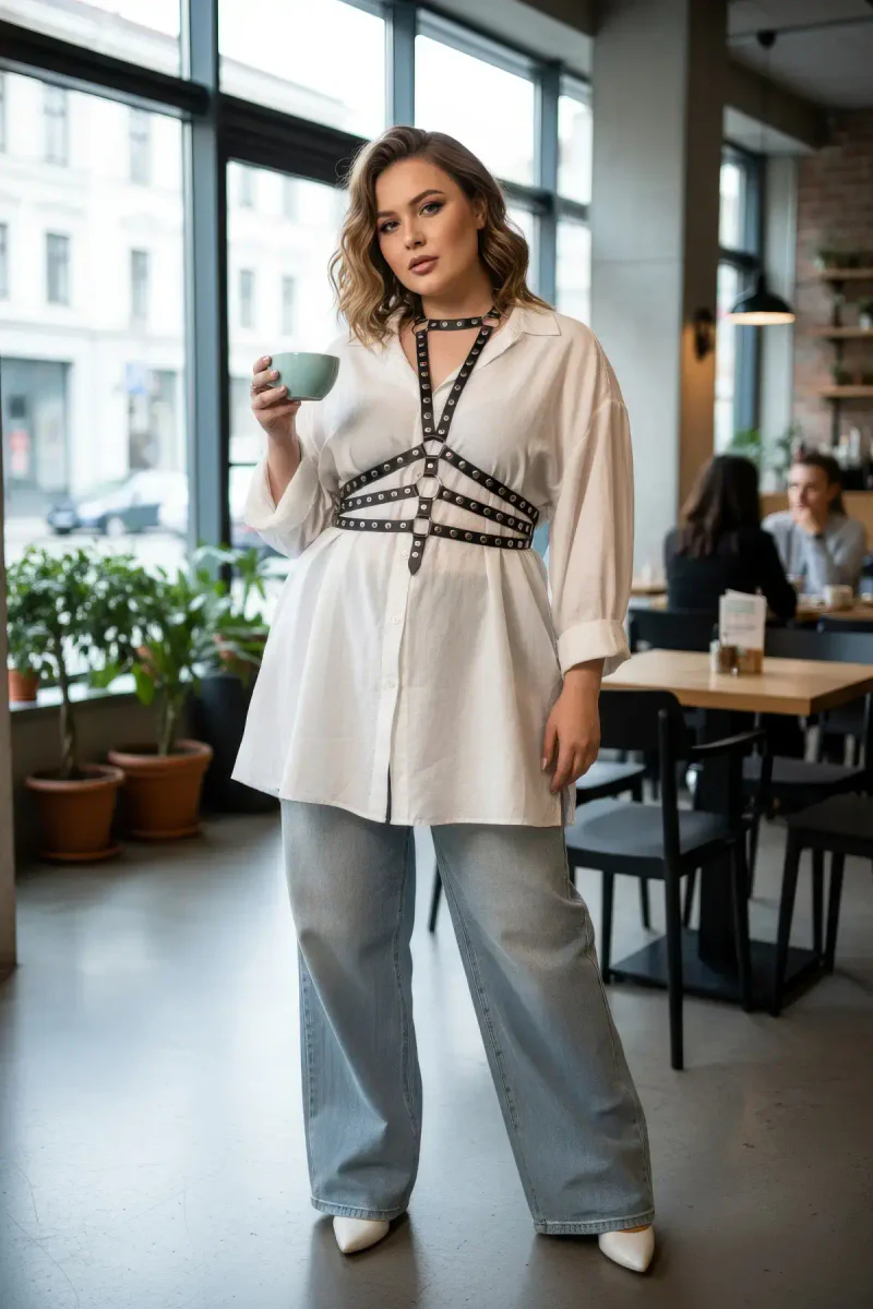 Plus Size Black Women's Belt, Riveted Leather Harness Body Accessory - APFT546