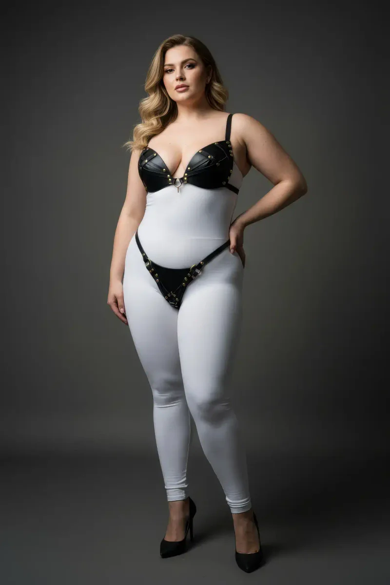 Plus Size Black Women's Harness Set Leather Look Ring Detailed Fancy Accessory - APFT1391