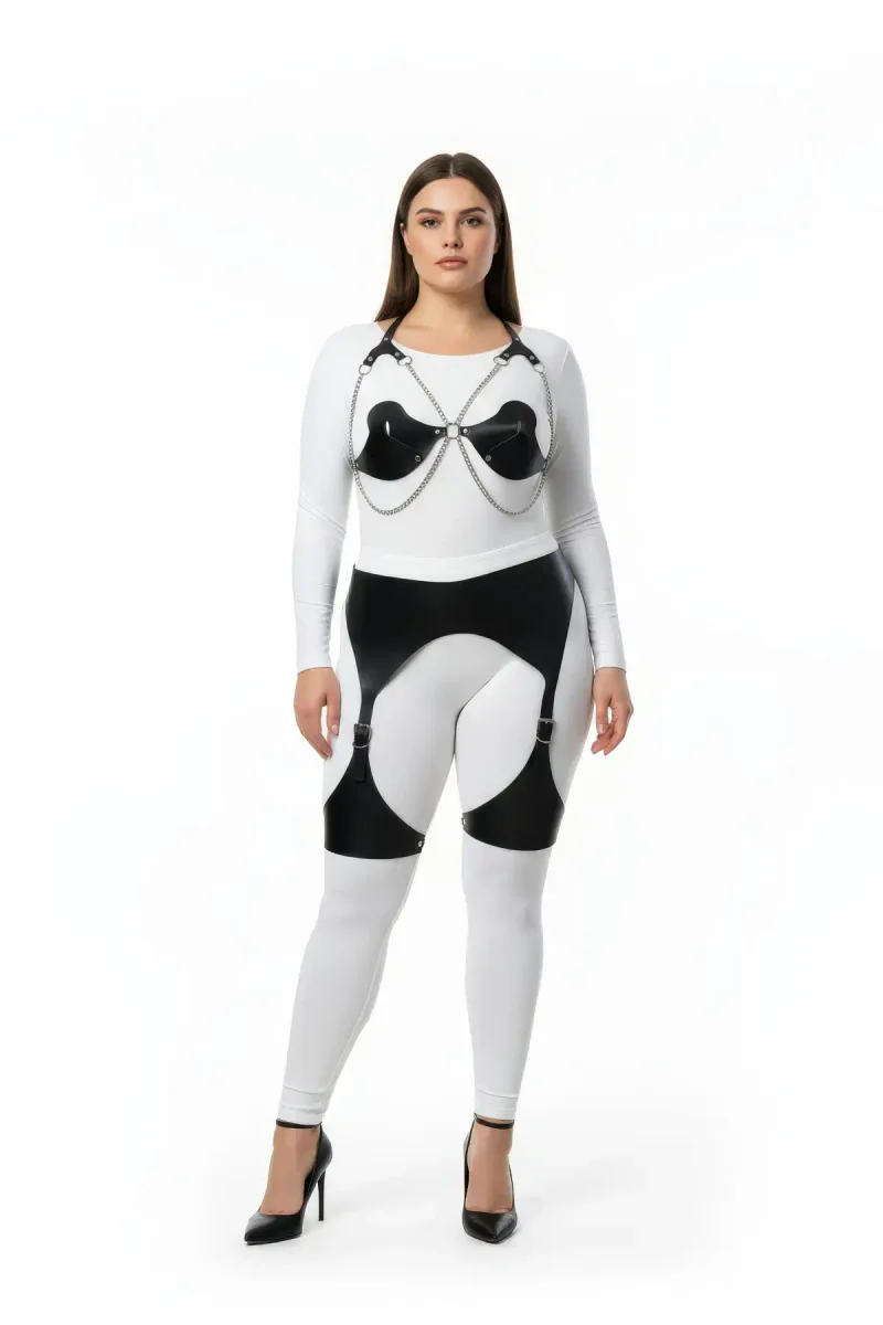 Plus Size Black Women's Harness Set with Chain and Garter Detail - APFT1220