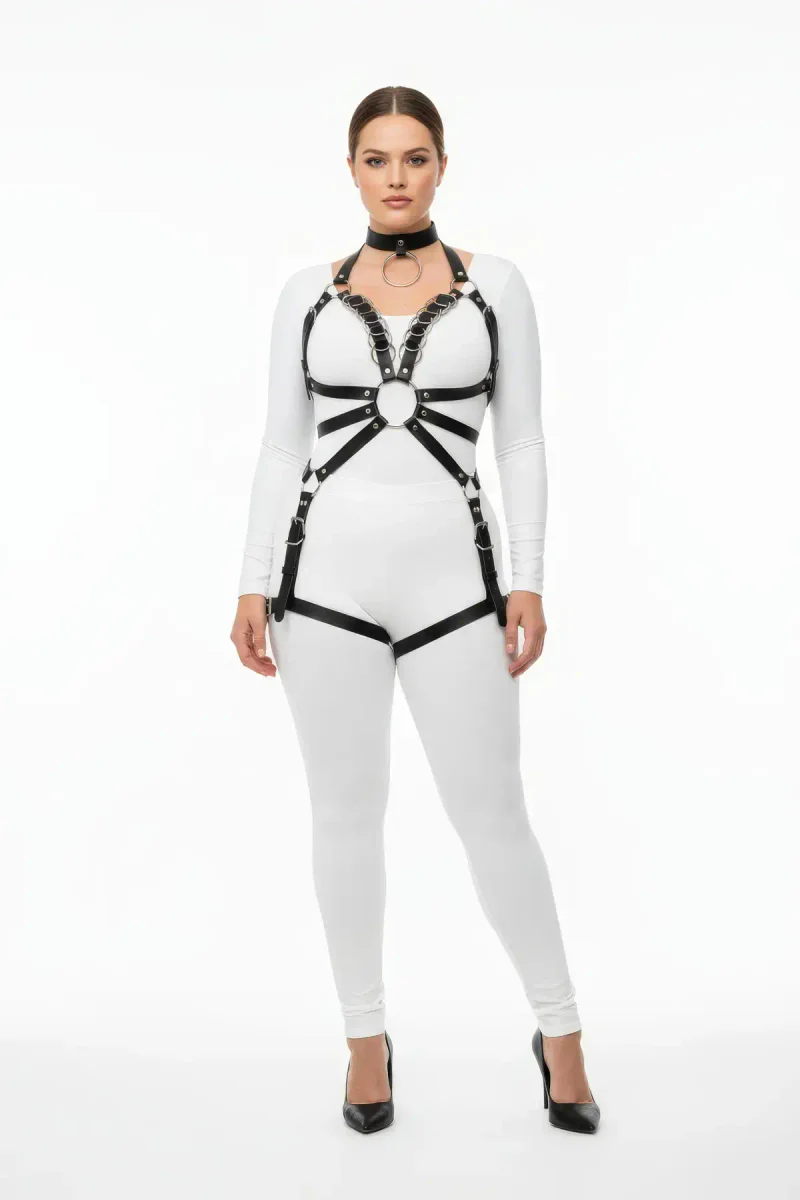 Black Body Harness Full Body Metal Ring Detailed - APFT360