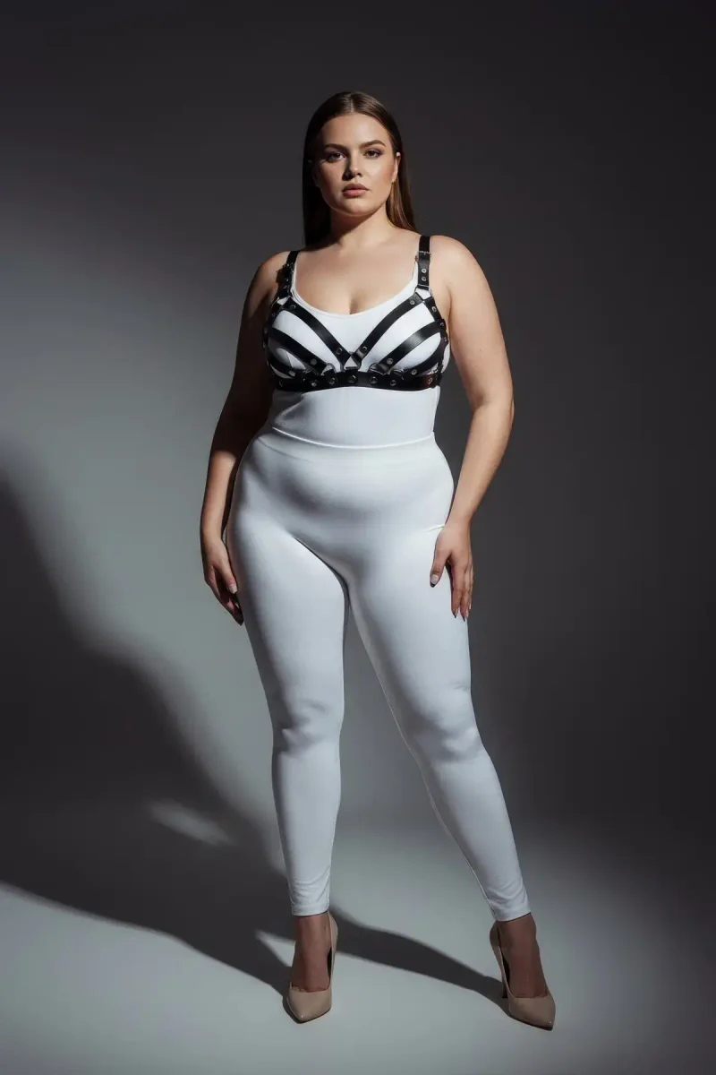 Home/Womens Harness/Chest Harness/Plus Size Black Women's Leather Bra Harness Set with Adjustable Straps - APFT733