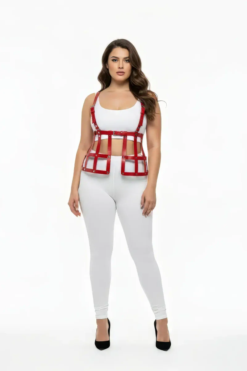 Plus Size Red Leather Skirt Harness Detailed Fantasy Body Accessory - APFT983