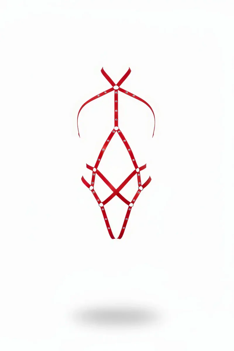 Red Body Harness Shiny Leather Cross-Tied Body Accessory - APFT295