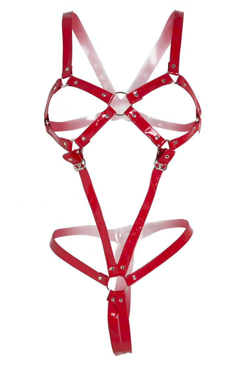 Red Faux Leather Body Harness Lingerie with Adjustable Straps