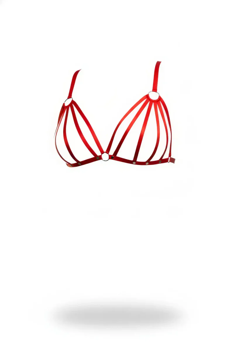 Red Harness Set Ring Detailed Multi-Striped Bust Accessory - APFT553