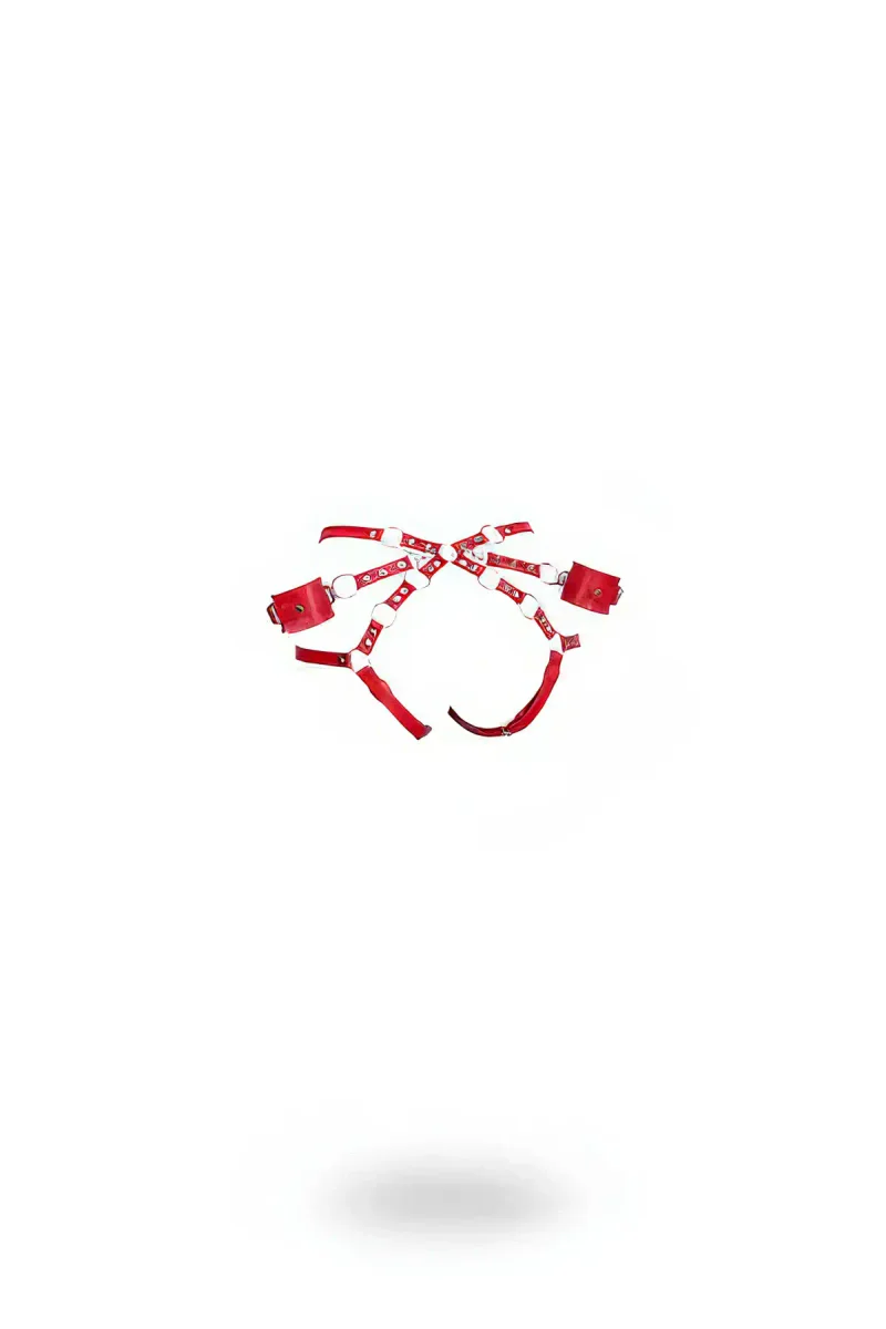 Red Harness Set with Shiny Leather Metal Ring Detail - APFT540