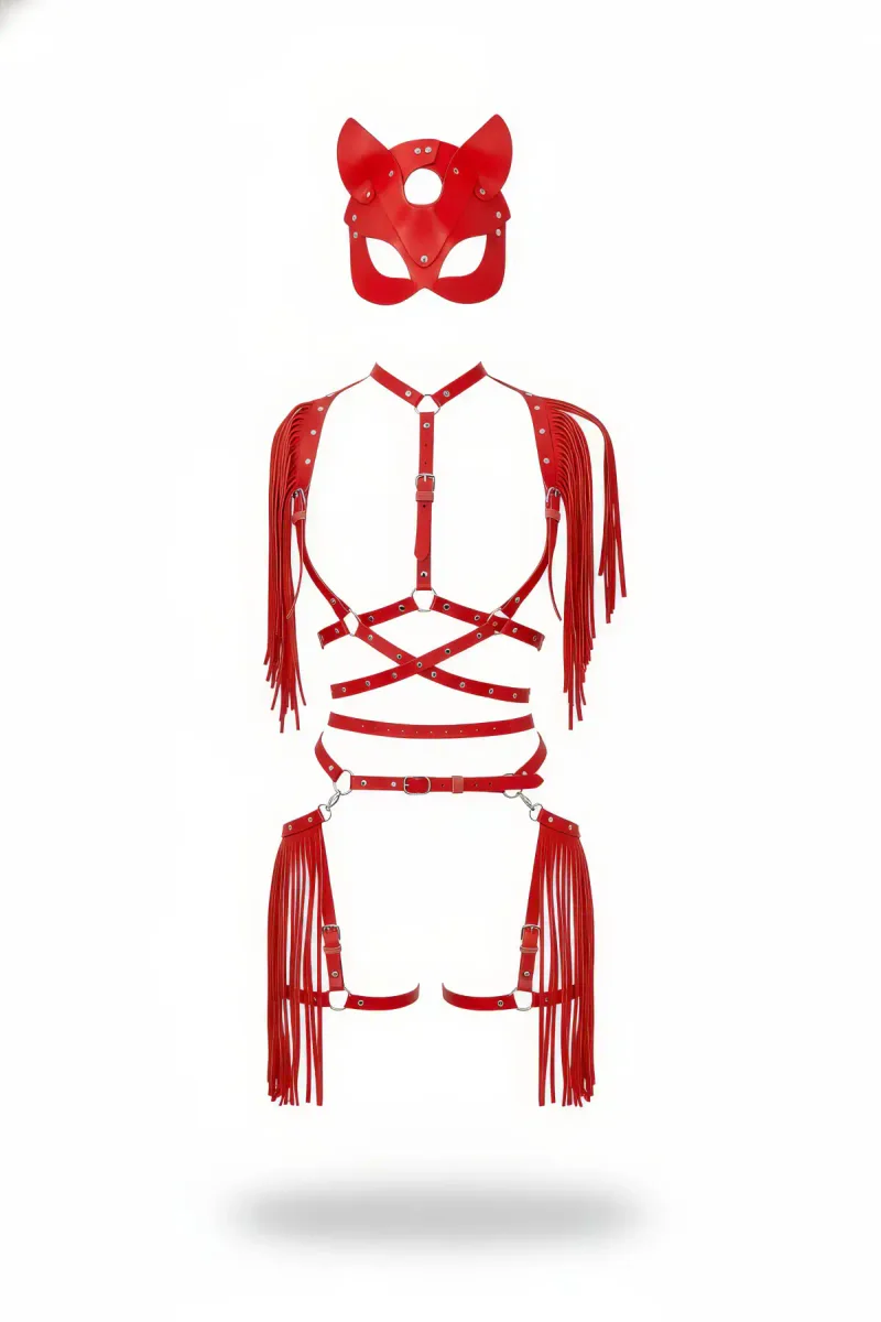 Red Skirt Leather Tassel Body Accessory Set - APFT892