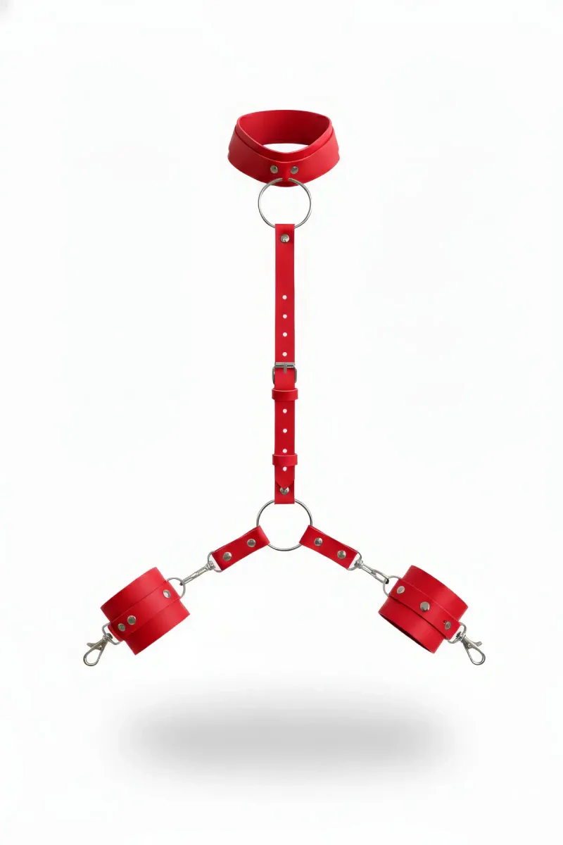 Red Whip - Handcuffs Leather Collar Binding Set - APFT743