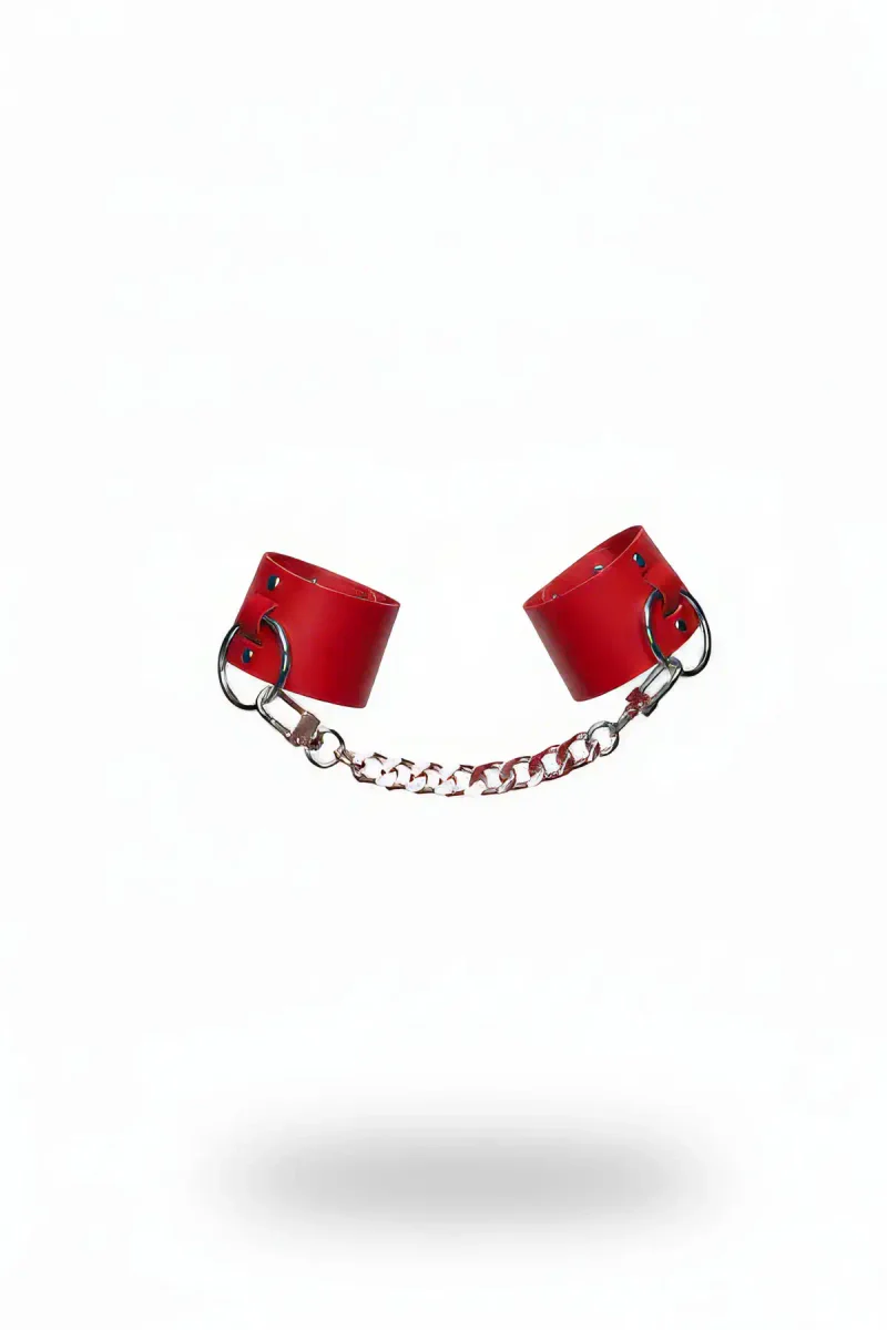 Red Whip - Leather Bracelet with Handcuff Chain Link - APFT269