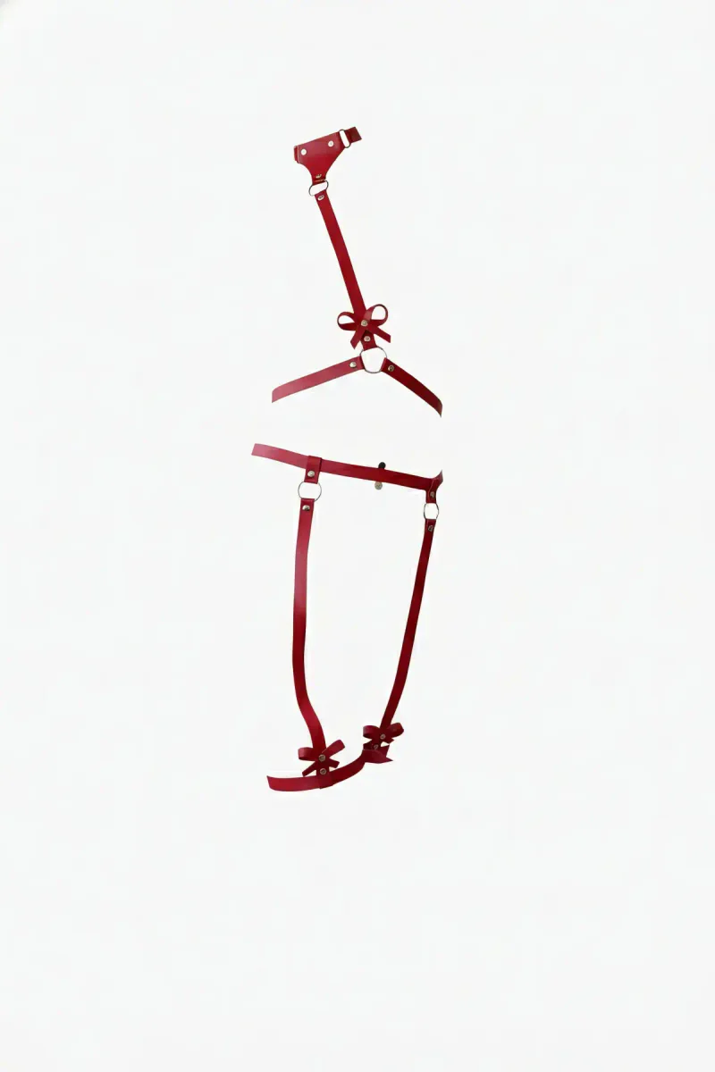Red Women's Harness Suit with Bow Detail and Garter - APFT276