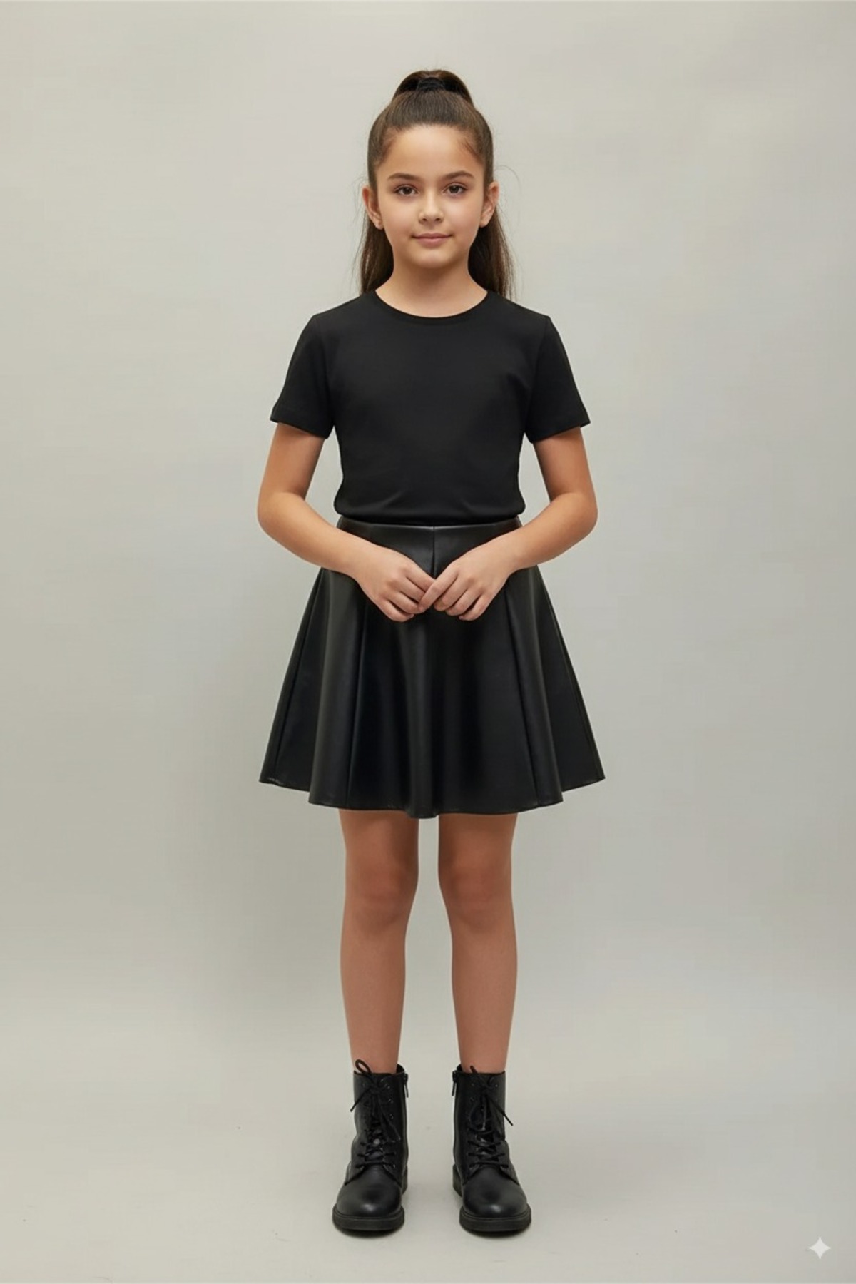 WAYS 8 Parça Suni Deri Beli Lastikli Siyah Kız Çocuk Etek