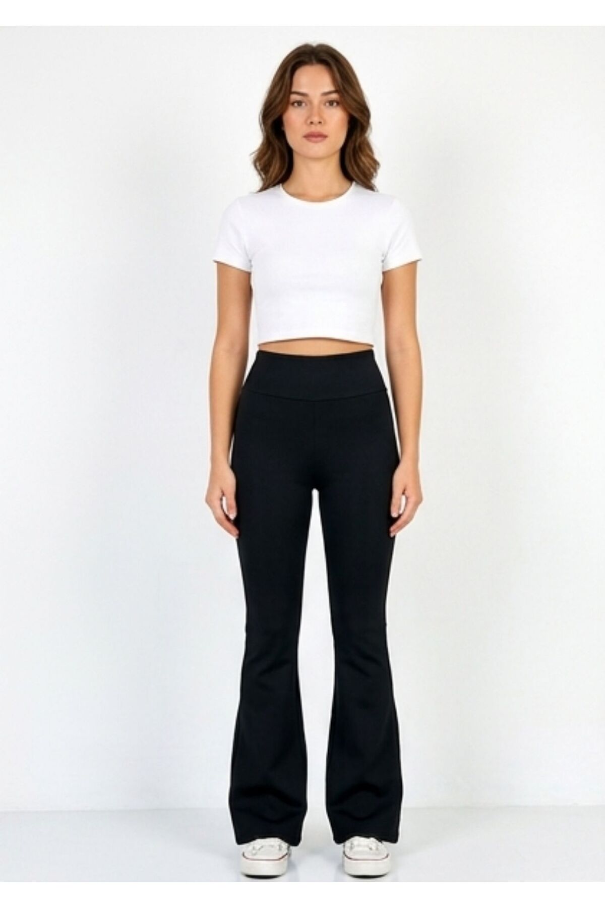 WAYS Kadın Siyah Dalgıç İspanyol Paça Tayt Yüksek Bel Günlük & Şık Tasarım